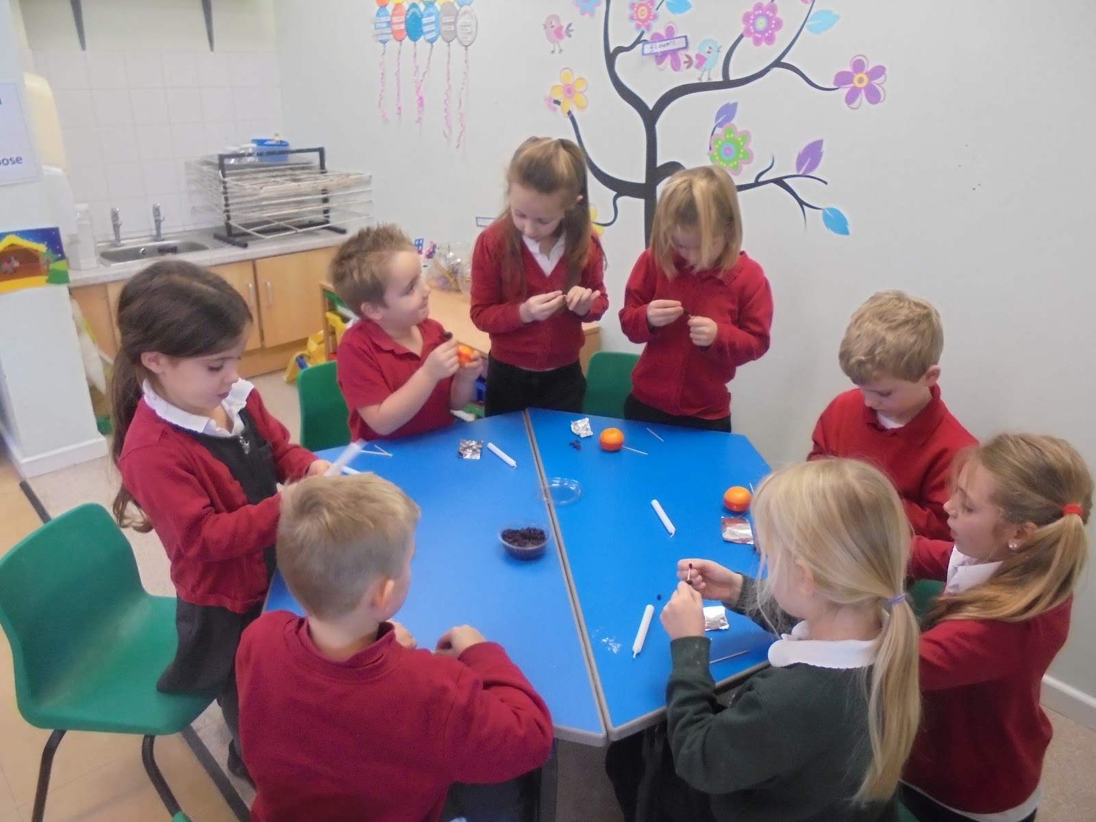 Each school had a workshop where the children found out about Christingles and then made their own. The older children helped the younger children.